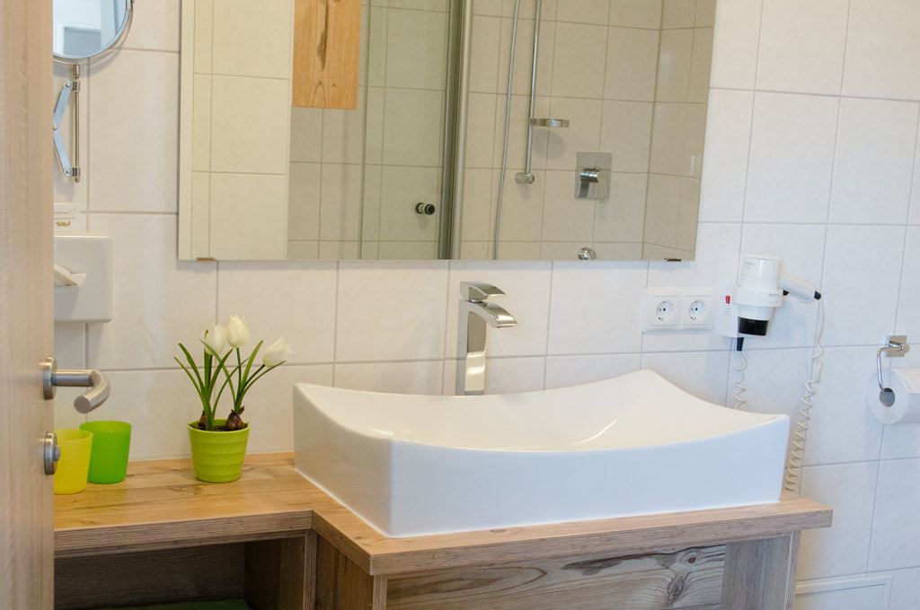 für jeweils 2 Personen im 1. Obergeschoss, oder unserer großen Ferienwohnung für bis zu 4 Personen im Erdgeschoß, im Herzen von Aldrans.